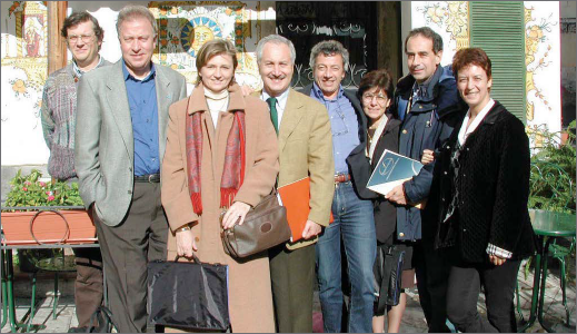 Figure 3. Group photo at the 14th AIM Congress in Sirmione. From left to right, amomg others, Paola Tonin, Angela Berardinelli, Tiziana Mongini, Claudio Bruno, Luisa Politano, Giuseppe Vita, Luciano Merlini, Giovanni Meola, Antonio Toscano, Salvatore Di Mauro, Corrado Angelini, Giovanni Nigro, Roberto Massa